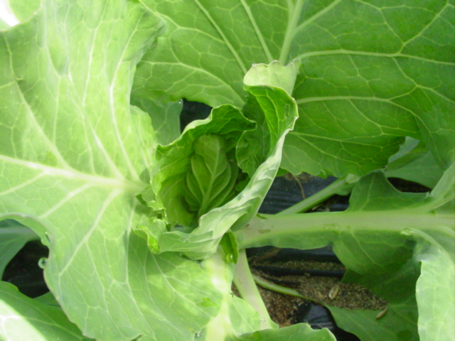 Y地区の定植後6週になる白菜の中心部分です。結球始まってますよね?