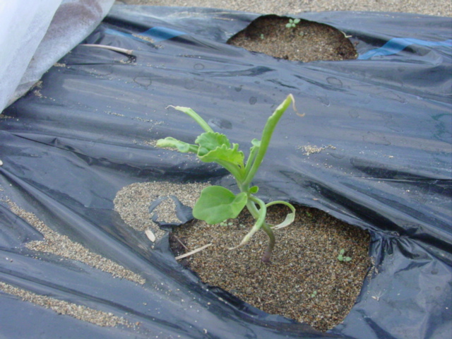 もうすぐ定植4週になる株のトンネル内部はこんな感じです。隣の株と完全に触れ合っていますね。
