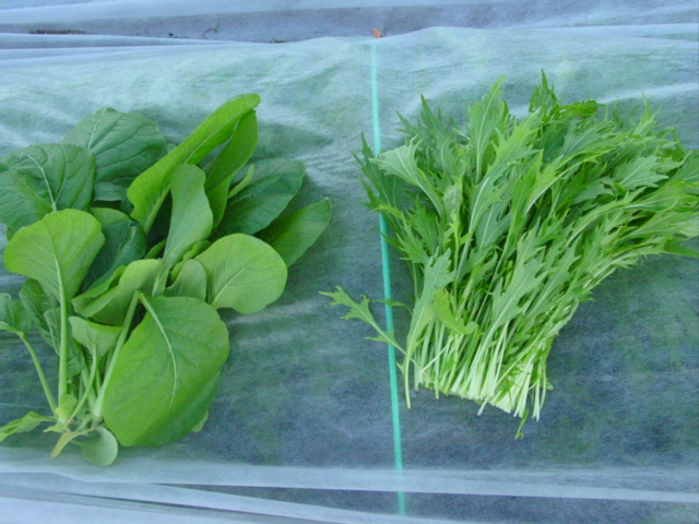 水菜&小松菜収穫。どんどん採らないとあふれてしまいそうです。