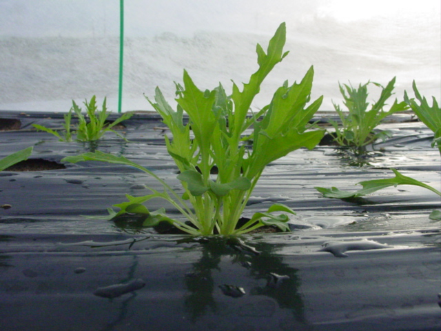 他の野菜も発芽や根付きが良かったですが、ほうれん草の圃場には堆肥を1.5倍撒いてあります。しかも表層施用と言って、あまり深く混ぜ混まないようにしていますので、堆肥が保水マットの役割をして、発芽や根張りを促進しているのだと思います。砂地栽培ではかなり重要なテクニックですね。その証拠に、すいか畝の跡地に植えた白菜は、同時期に植えたものより根付きが悪く、あまり成長していません。すいか畝は溝底施用に近く、表層はほとんどガラス質の砂ばかり。水やり、追肥は同じようにやっていますが、恐らくは地の底まで直接流れてしまい、効いていないのだと思います。更に、表層は通気性が良く、微生物が繁殖するため堆肥が分解されやすく、分解され栄養素となった堆肥は、砂地のため比較的早くに下層へと流れます。このため、砂地の場合、堆肥は表層にあってこそ効果があると言えます。