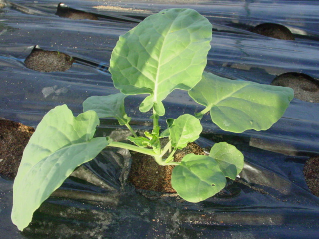 キャベツです。不織布をめくって、かなり退き気味に撮りました。まだ日中が暖かいうちに成長してもらわなければいけません。