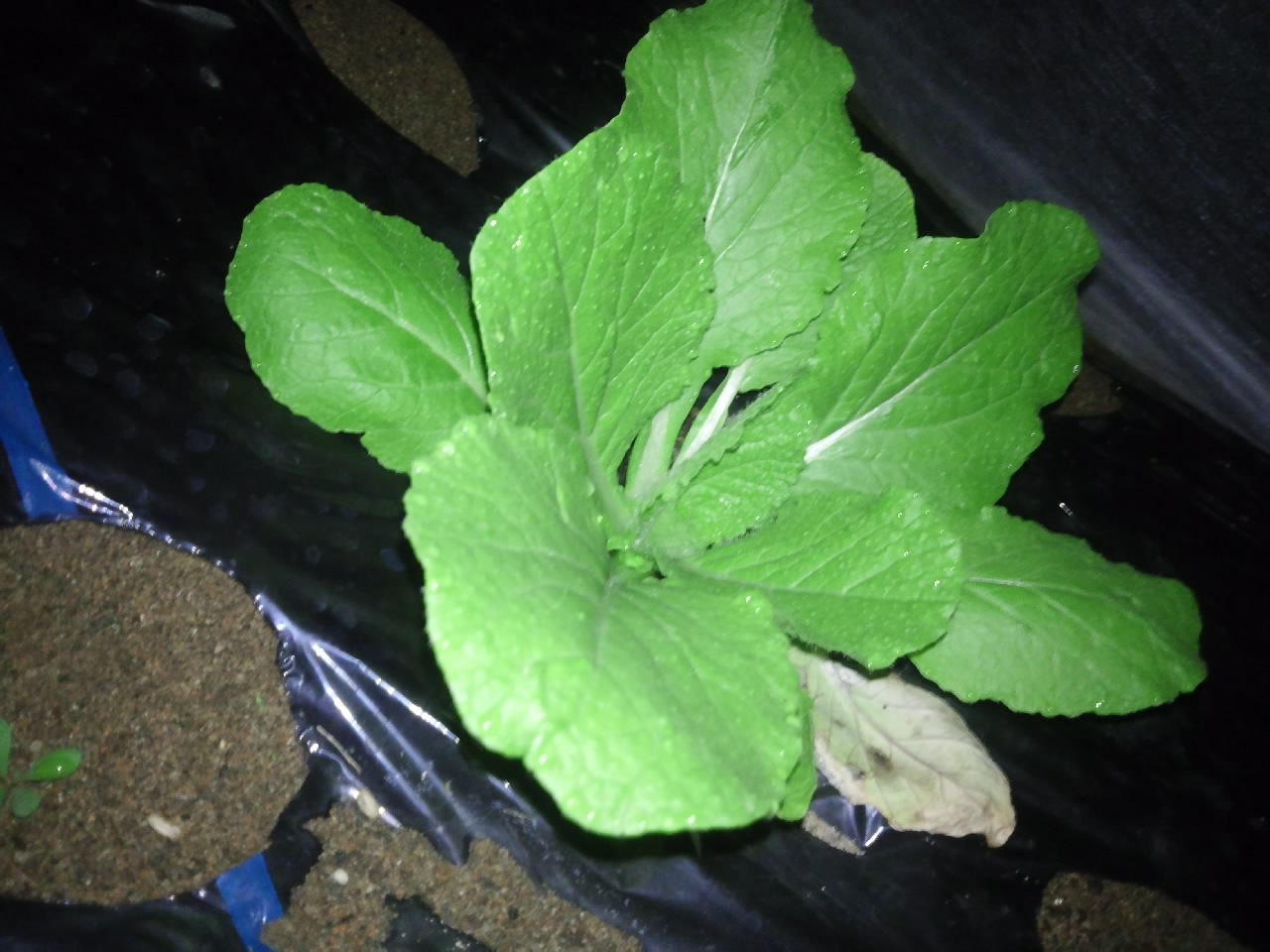 白菜です。見た目にたくましくはなってきましたが、Y地区と比べれば小さいですね。Y地区はこの1年で2回は堆肥を与えた場所に植えていますので、肥え具合が違うのでしょうか?