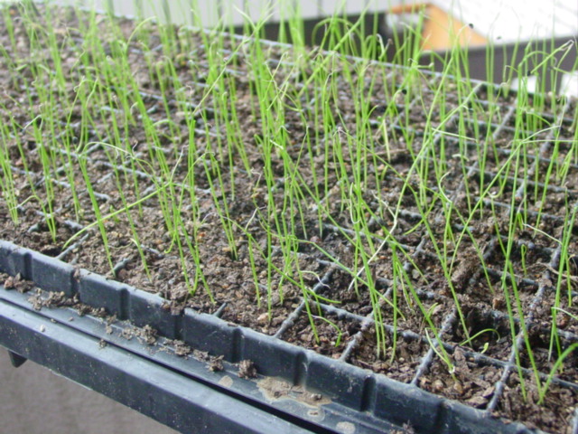 家に帰って、先週播種したネギを一枚撮りました。全セル出揃ってきましたね。品種は石倉根深冬太です。
